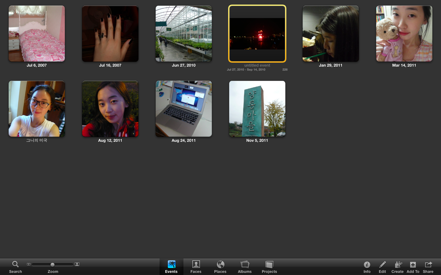 For me, it is very easy to classify photos that I have. I have many pictures that I took when traveling around the world. Through iPhoto, I could classified them easily. I classified them by year, place and event.